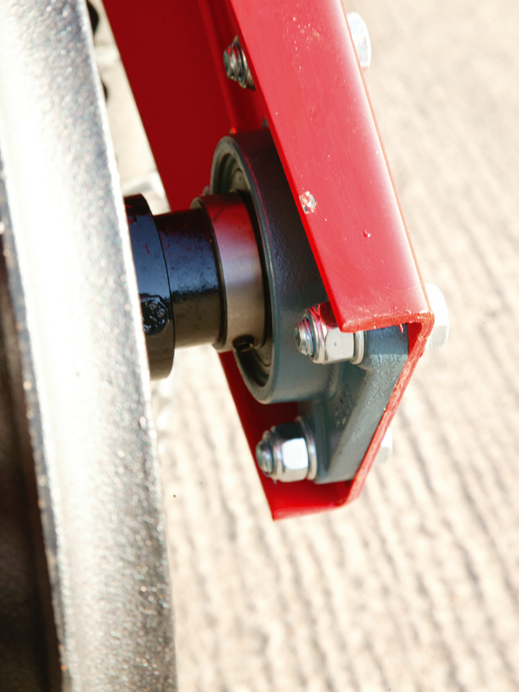 El eje de las secciones laterales de los Tip-Rollers de 8,2 m, 9,5 m y 10,2 m tiene un rodamiento de bolas en el centro como soporte adicional para evitar que el eje se doble.